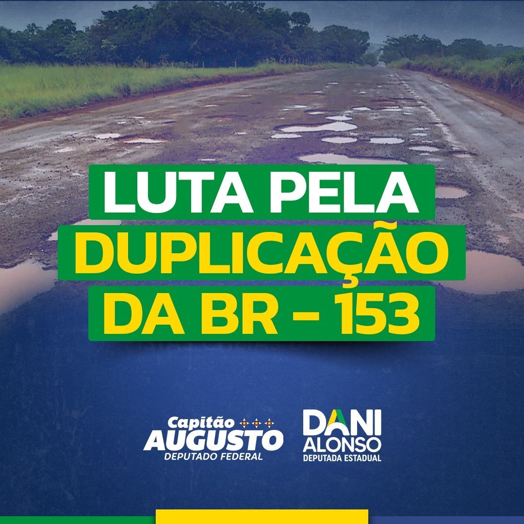 Capitão Augusto, deputado federal pelo PL-SP, e a deputada estadual Dani Alonso, estão trabalhando pela duplicação da BR-153. A rodovia que atravessa o país de norte a sul, é responsável pelo escoamento de grande parte da produção industrial e agropecuária da região, além de ser uma importante rota de transporte de grãos. No entanto, a BR-153 está em más condições, e é conhecida como a "Rodovia do medo" ou "Rodovia da morte".