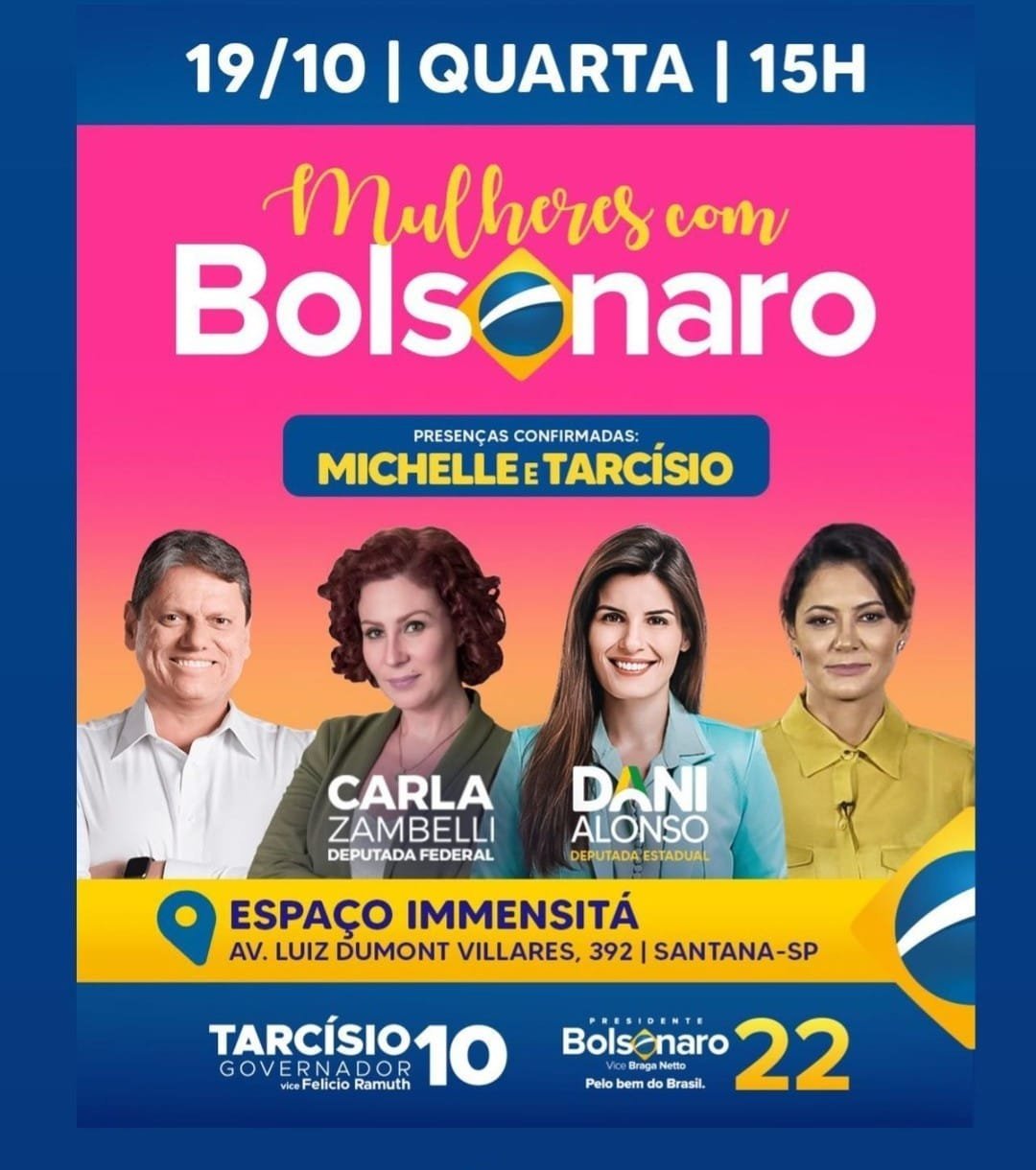 Por isso, é tão importante unirmos nossas forças para reeleger o nosso presidente e também eleger nosso Governador Tarcísio. A gente tem pressa de mudar o Brasil. E quem vai virar esse jogo somos nós mães e mulheres do nosso país!